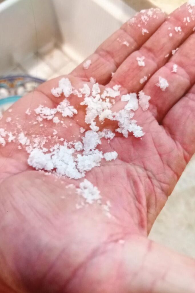 But the problem grew worse. Their ice maker expelled large clumps of wet salt, which, when rubbed, dissolved into an oily, foul-smelling substance.