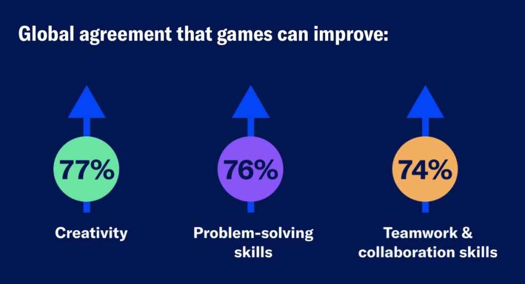 And although having fun was the top reason respondents gave for playing (66 percent), they also said gaming could improve their skills. Seventy-seven percent said gaming increased creativity, 76 percent said it improved problem-solving and 74 percent said gaming upped both cognitive skills and teamwork or collaboration.